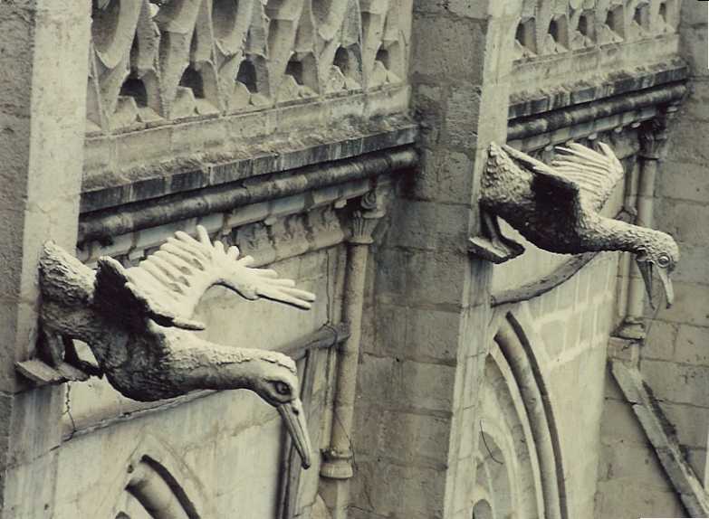 begin to roll in. The best word I can think of to describe this building is ''Catholic.'' It's old, ornate, and run down. Electric wiring runs randomly here and there in ways that I'm sure American building inspectors would not approve. Random pieces of plastic mend stained glass windows where the leaded glass panes have broken. In the high altitude, I puff a bit as I climb to the towers and stand on platforms that don't feel very stable.