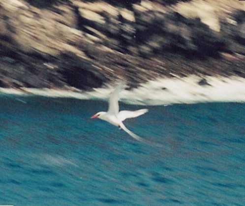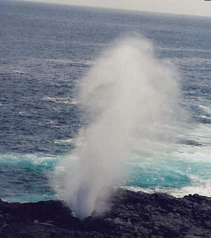 The bird watchers are very excited to see a tropicbird. This is the mating and nesting area for albatrosses but it is the wrong season. A big blowhole where the incoming water pushes into a crevice makes an impressive plume - but it isn't life.