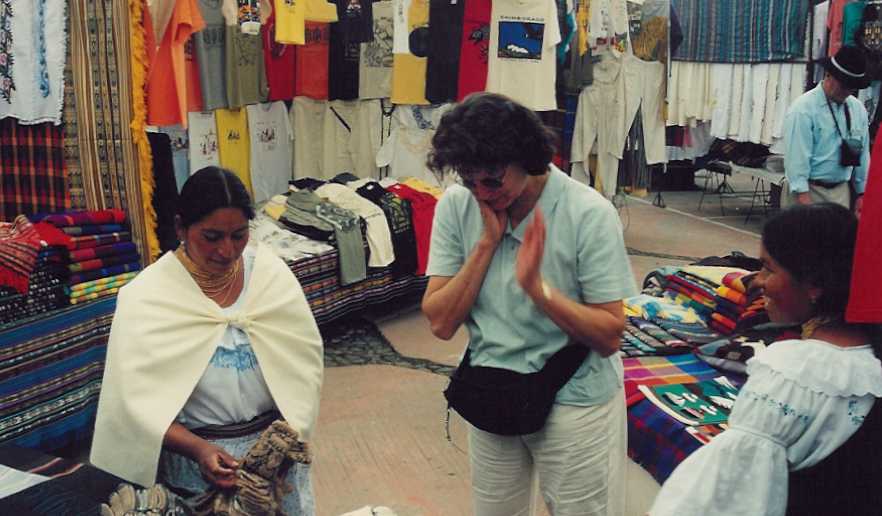 We go to the Wednesday market where we see lots of clothing and ''art." Karen buys some of everything - or so it seems. We seem to have acquired three sweaters, one painting, two gourd rattles, two pair of gloves, and a wood turtle. Maybe I need a new hat after all.