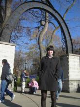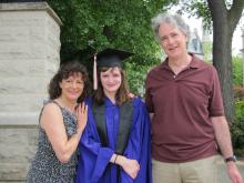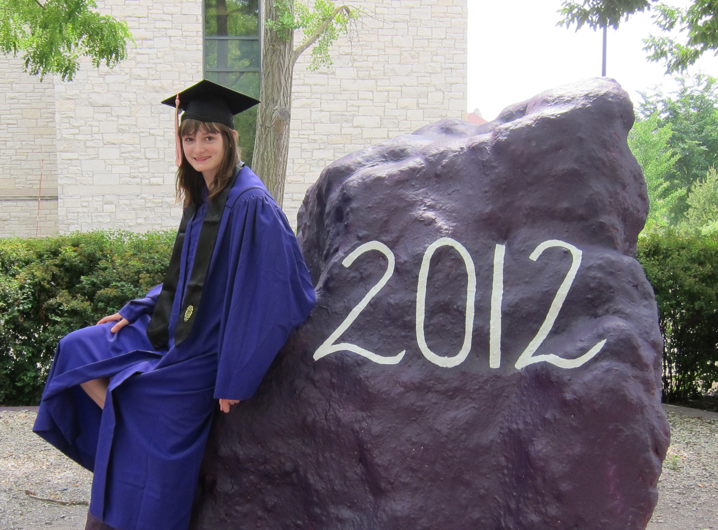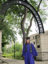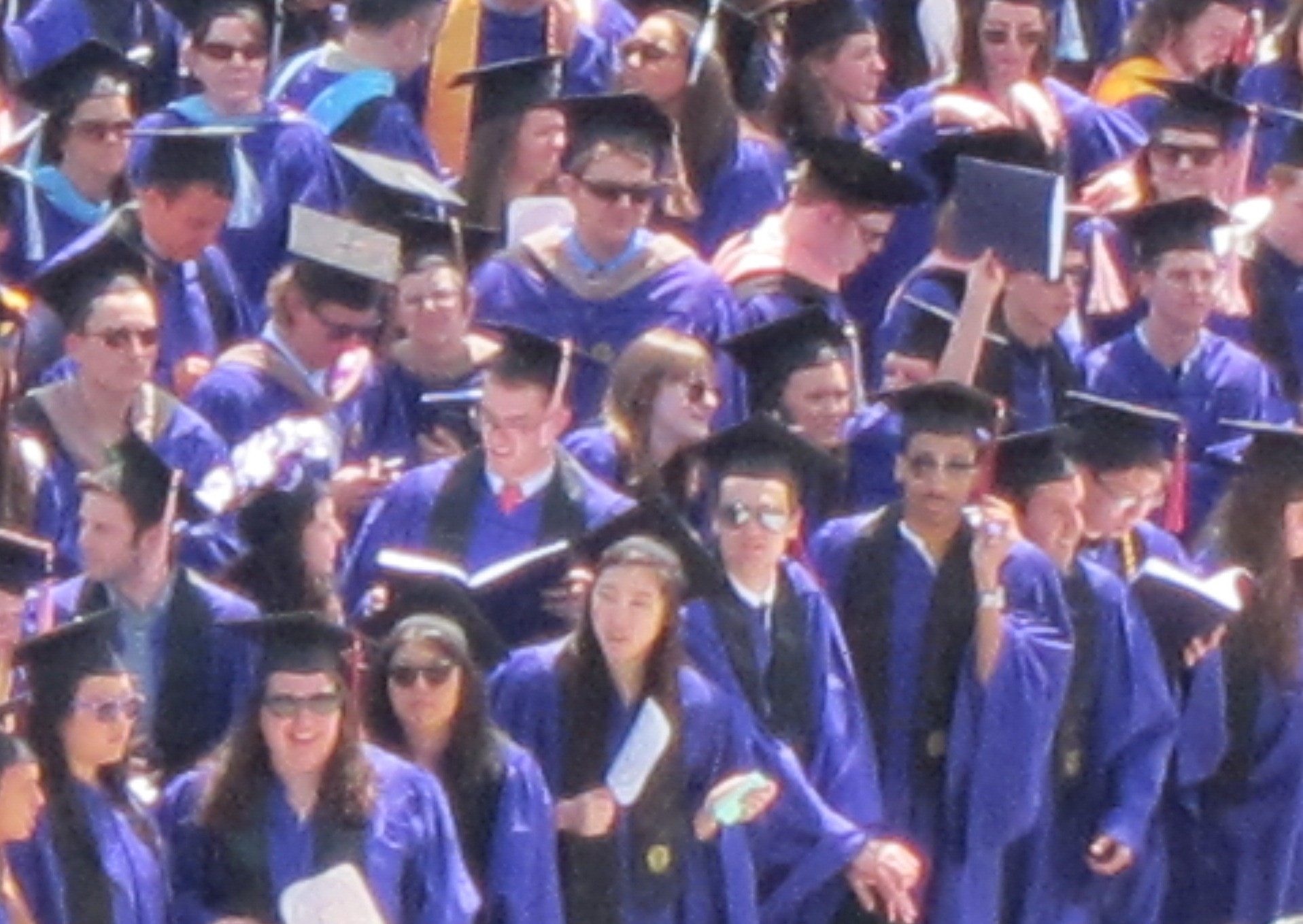 Angela at Northwestern University commencement, center with sunglasses, w/o cap